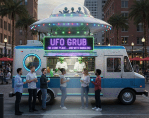 Discover out of this world flavors at UFO Grub, your upcoming pop-up food experience in Bakersfield.